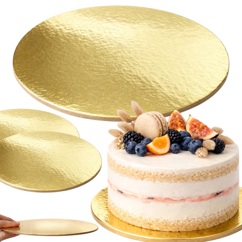 Złoty podkład pod tort podkreśla charakter uroczystości i sprawia, że nawet prosty wypiek wygląda jak z pracowni cukierniczej. Sprawdzi się na przyjęciach domowych, wieczorach panieńskich, komuniach i słodkich stołach.