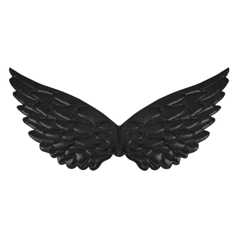 Stylowe, czarne skrzydła w metalicznym wykończeniu, inspirowane mitycznym pegazem. Wyraźnie zaznaczone pióra i lekko błyszcząca powierzchnia tworzą efekt głębi i nadają kostiumowi tajemniczy, elegancki charakter.