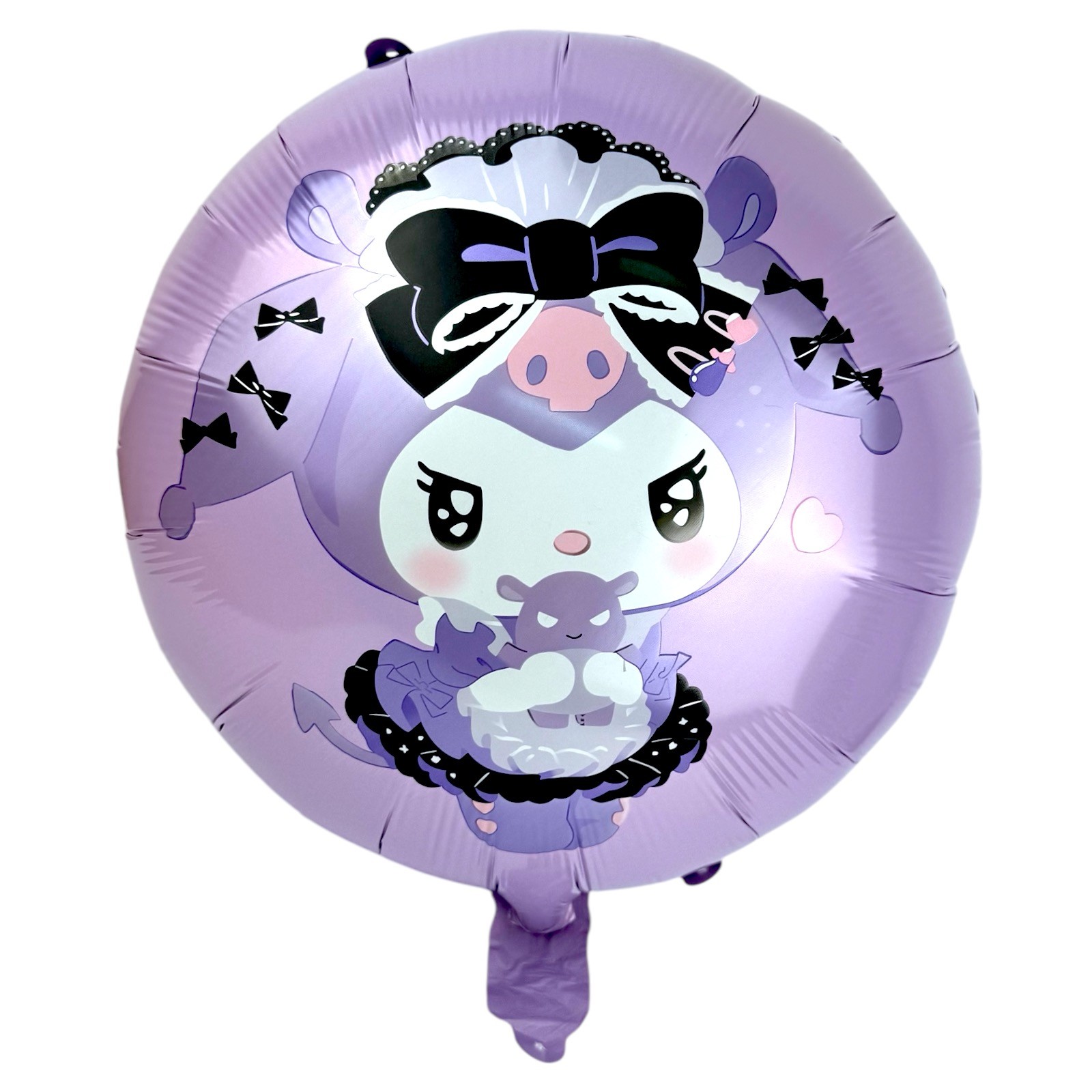 Balon przedstawia postać Kuromi w charakterystycznym fioletowo-białym stroju z czachą, która dodaje jej odrobinę buntowniczego uroku.