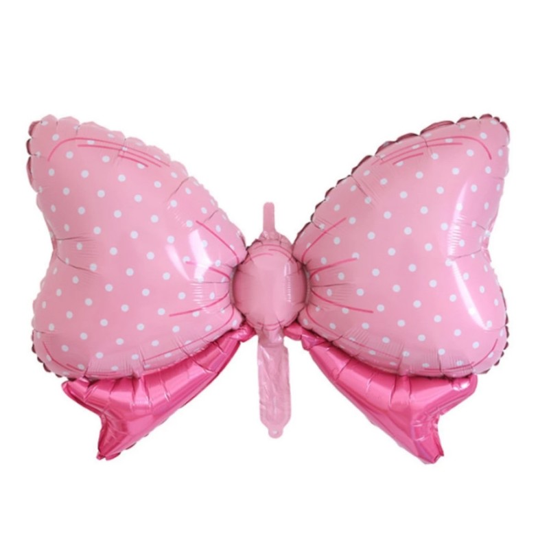 Elegancki balon foliowy w kształcie kokardy, idealny na urodziny, chrzest czy baby shower. Subtelny niebieski kolor z białymi kropkami doda uroku każdej dekoracji.