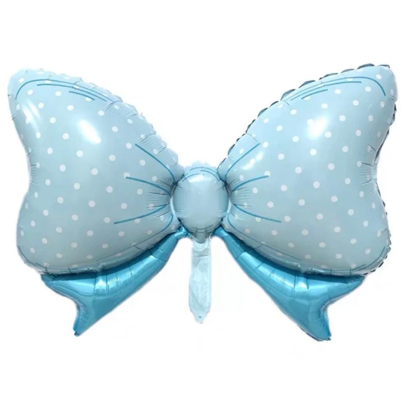 Elegancki balon foliowy w kształcie kokardy, idealny na urodziny, chrzest czy baby shower. Subtelny niebieski kolor z białymi kropkami doda uroku każdej dekoracji.
