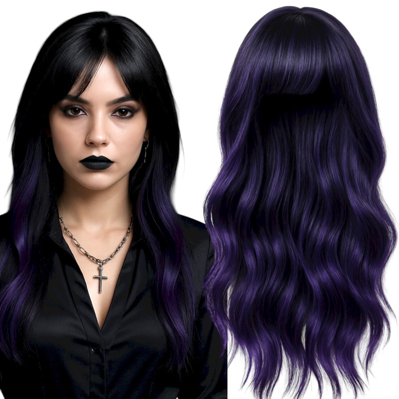 Odkryj elegancję i unikalny styl dzięki tej wyjątkowej peruce. Długie, czarno-fioletowe włosy doskonale sprawdzą się w cosplayu, podczas sesji zdjęciowych lub jako element oryginalnej stylizacji na specjalne okazje.