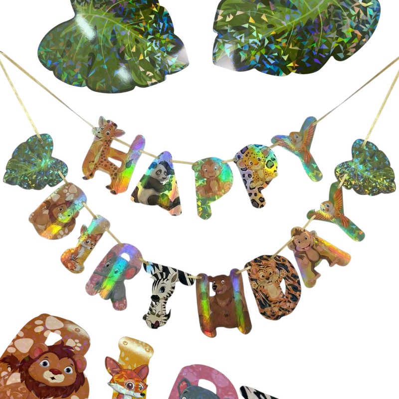 Ożyw swoje przyjęcie urodzinowe dzięki wyjątkowemu banerowi z motywem leśnych zwierzątek i efektem holograficznym. Ten estetyczny dodatek wprowadza radosną atmosferę i przyciąga wzrok gości.