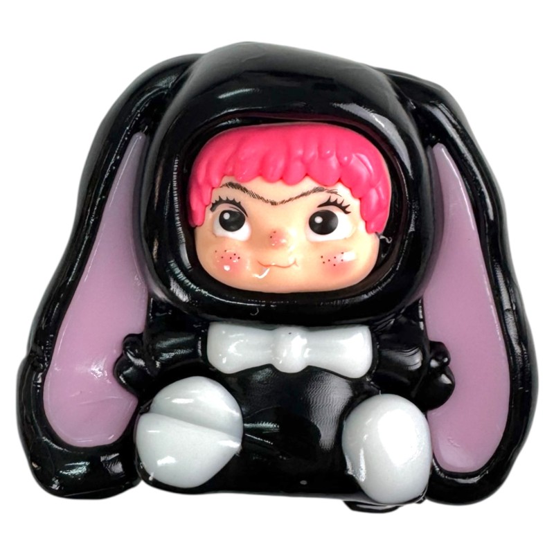 Rozciągliwy gniotek w formie uroczej laleczki w czarnym stroju króliczka to idealny sposób na chwilę relaksu. Różowe włosy, słodkie piegi i długie uszy tworzą wyjątkowo kawaii styl, który od razu poprawia nastrój.