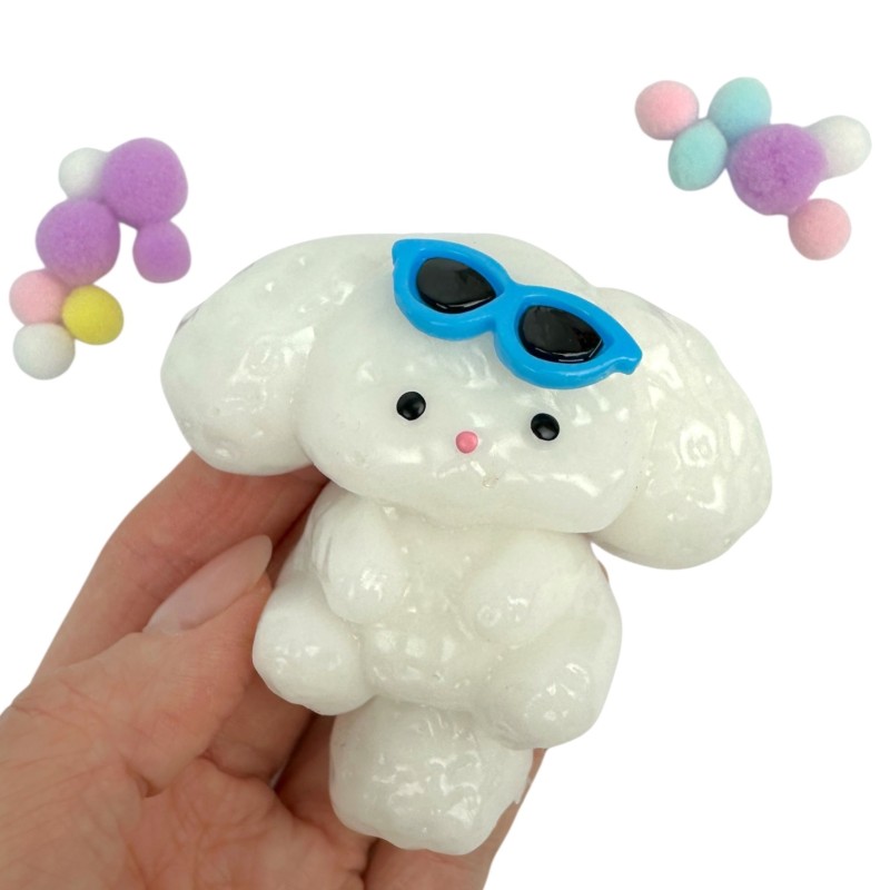 Uroczy gniotek w kształcie białego pieska przypominającego maltańczyka to mały, ale bardzo efektowny gadżet na co dzień. Miękki, żelowy w dotyku, zachęca do ściskania i ugniatania, pomagając się wyciszyć i skupić.