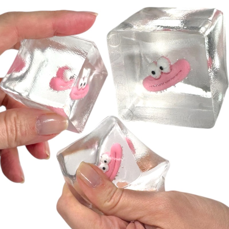 Miękki gniotek w kształcie kostki lodu z zabawną figurką w środku. Przyjemnie się ugniata, rozciąga i wraca do formy. Idealny jako zabawka antystresowa, sensoryczna i mały prezent dla dzieci, młodzieży i dorosłych. Cena dotyczy 1 sztuki,