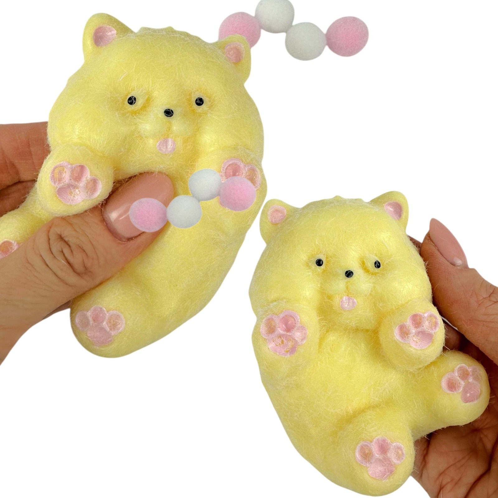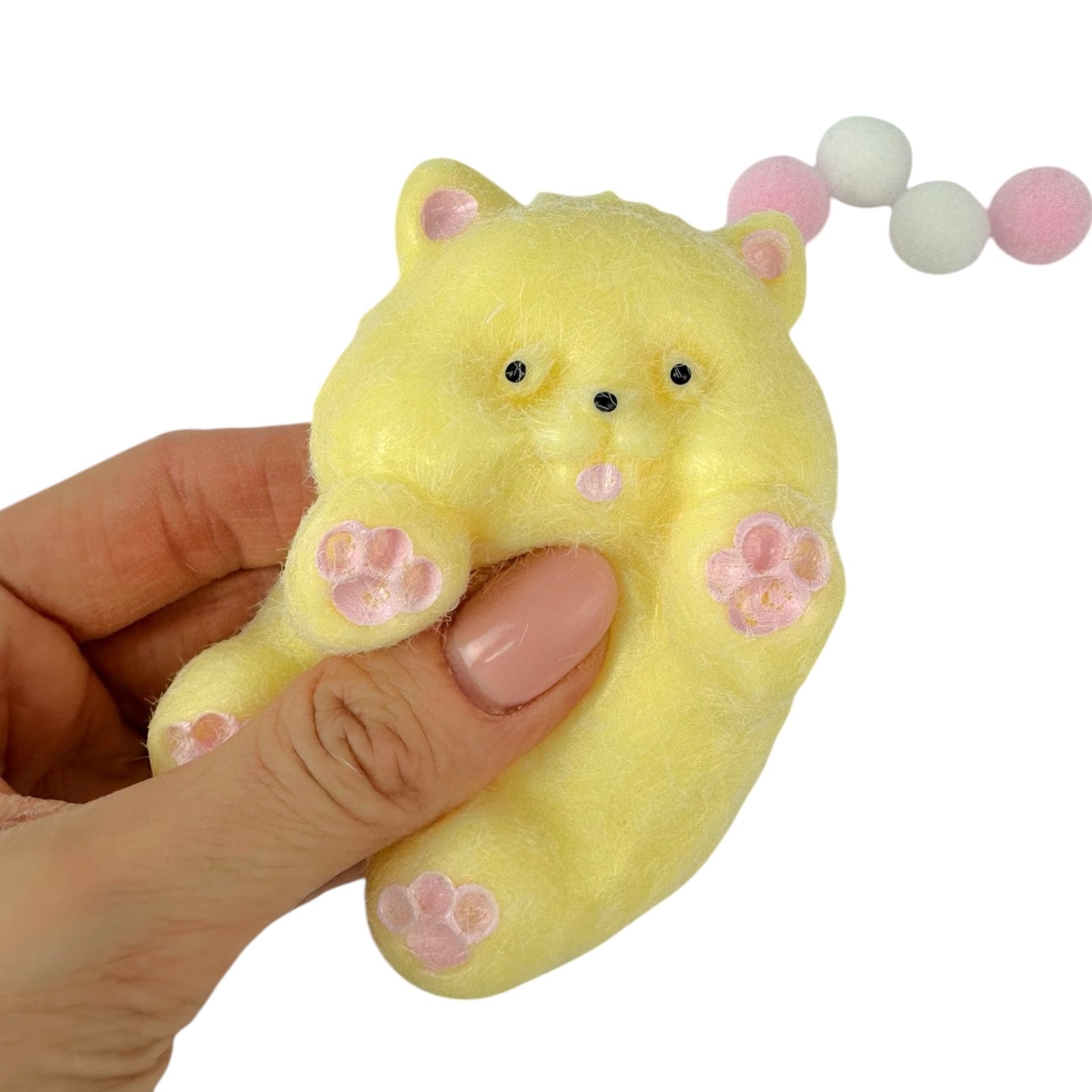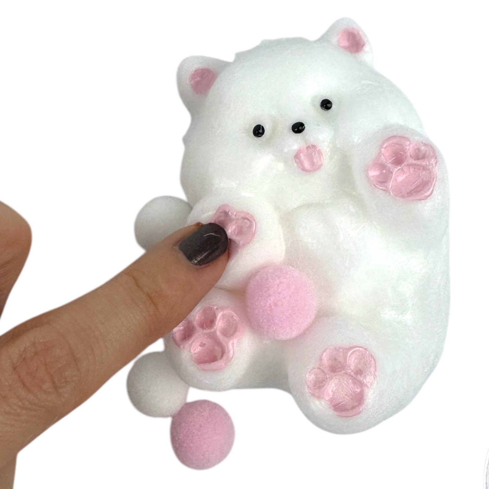 Poznaj uroczego gniotka w kształcie białego kotka, który zachwyca swoją miękkością, puszystym wykończeniem i dekoracyjnymi pomponikami. Ten antystresowy gadżet to idealny sposób na chwilę relaksu, rozładowanie napięcia i zabawę w każdej chwili.