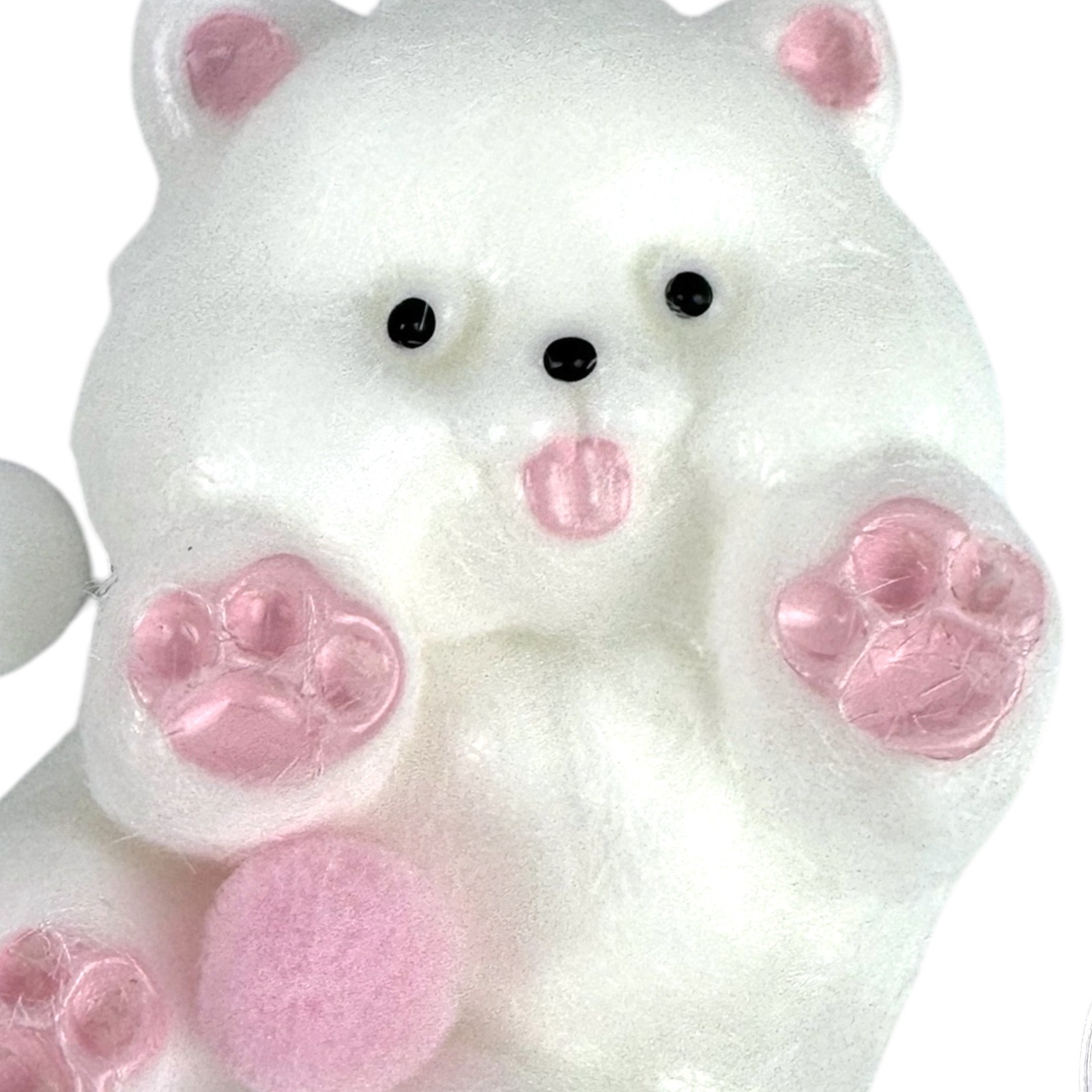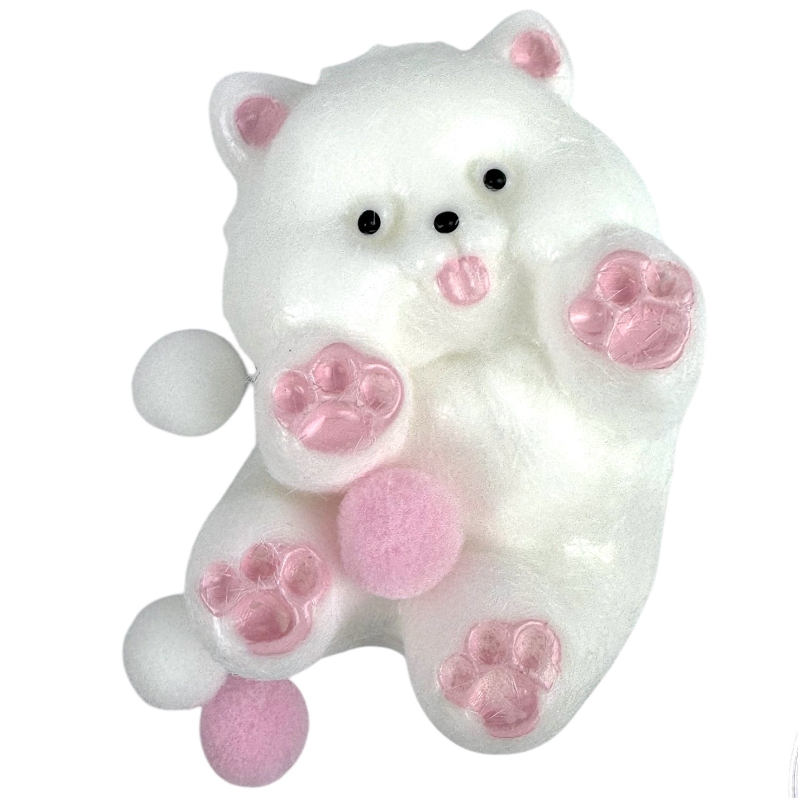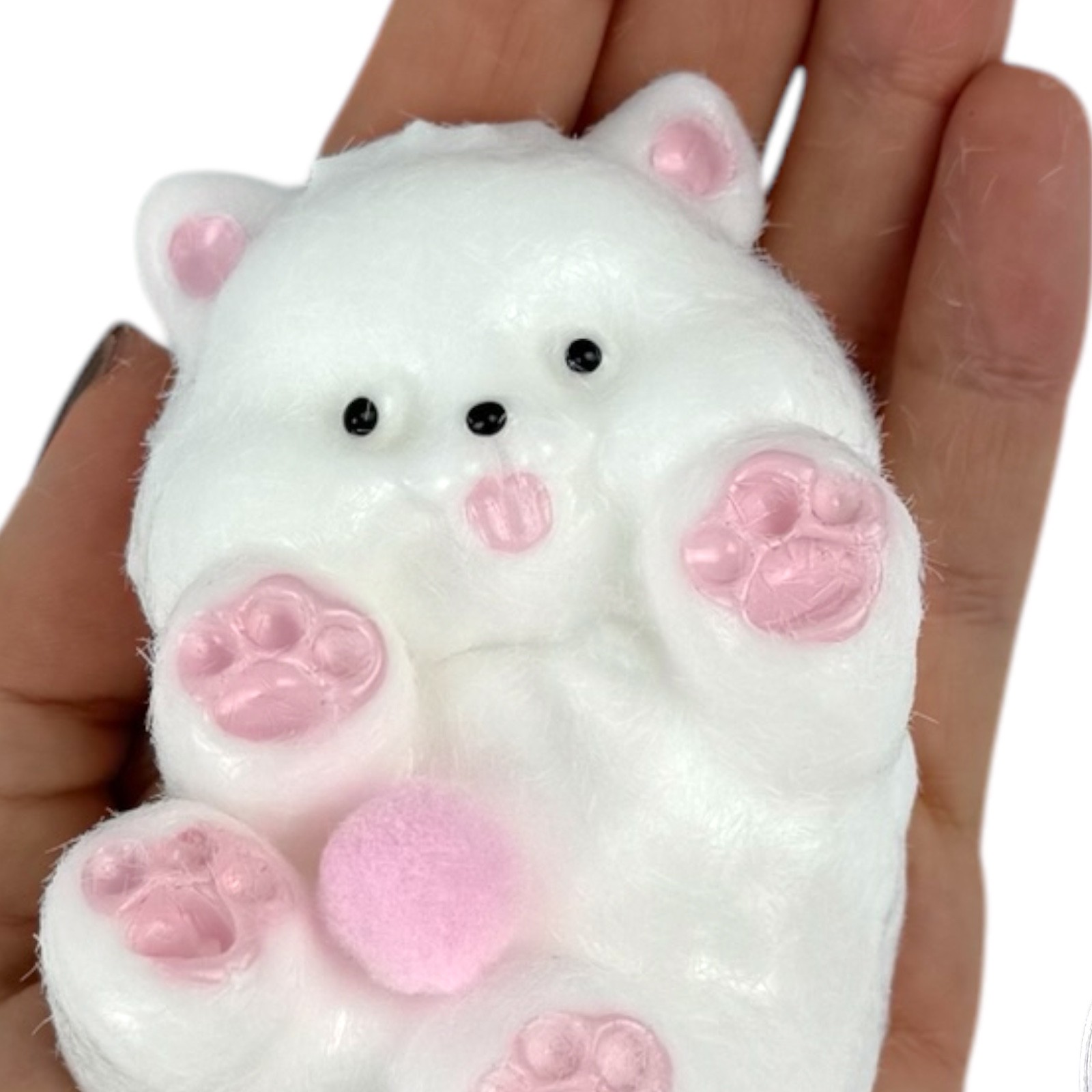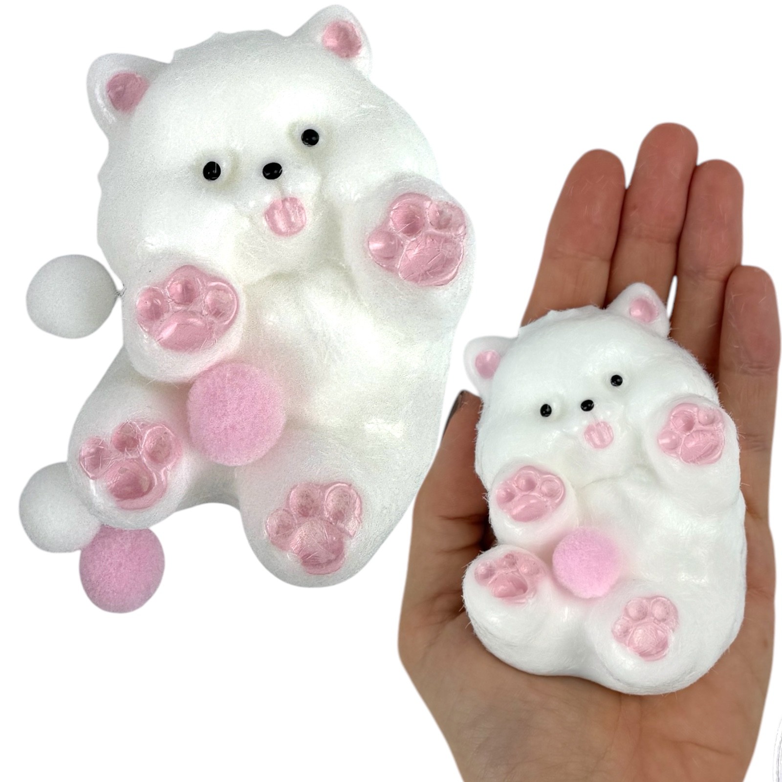 Gniotek kotek biały z różowymi łapkami i kuleczkami