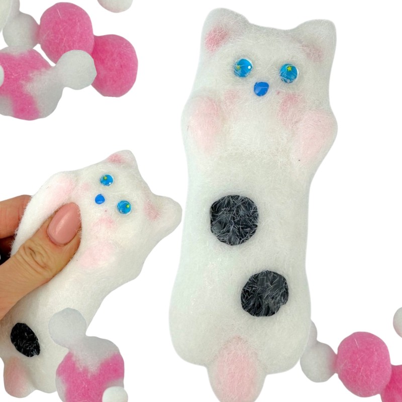 Poznaj uroczego gniotka w kształcie białego kotka, który zachwyca swoją miękkością, puszystym wykończeniem i słodziutkimi, kocimi zabawkami. Ten antystresowy gadżet to idealny sposób na chwilę relaksu, rozładowanie napięcia i zabawę w każdej chwili.