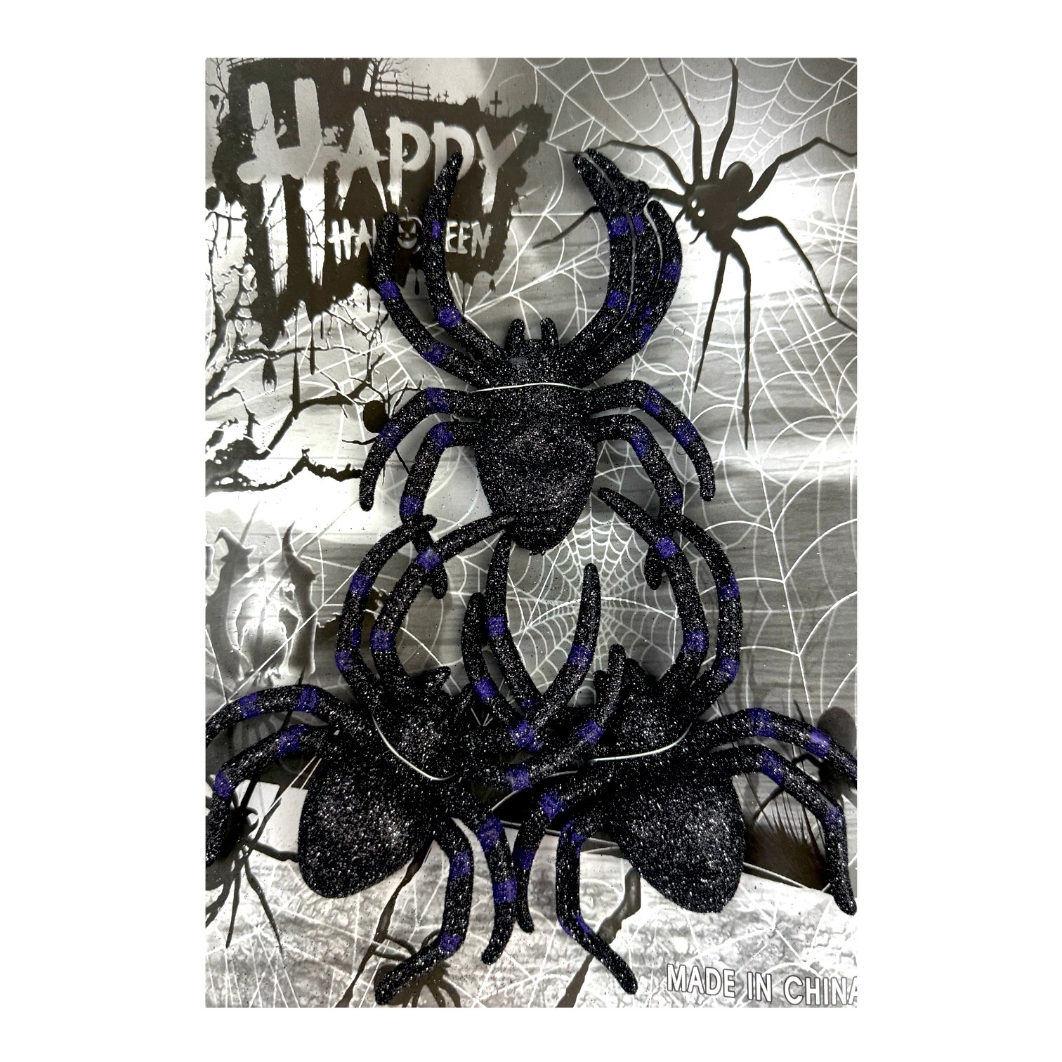 Zestaw Czarno fioletowych Pająków Dekoracyjnych na Halloween