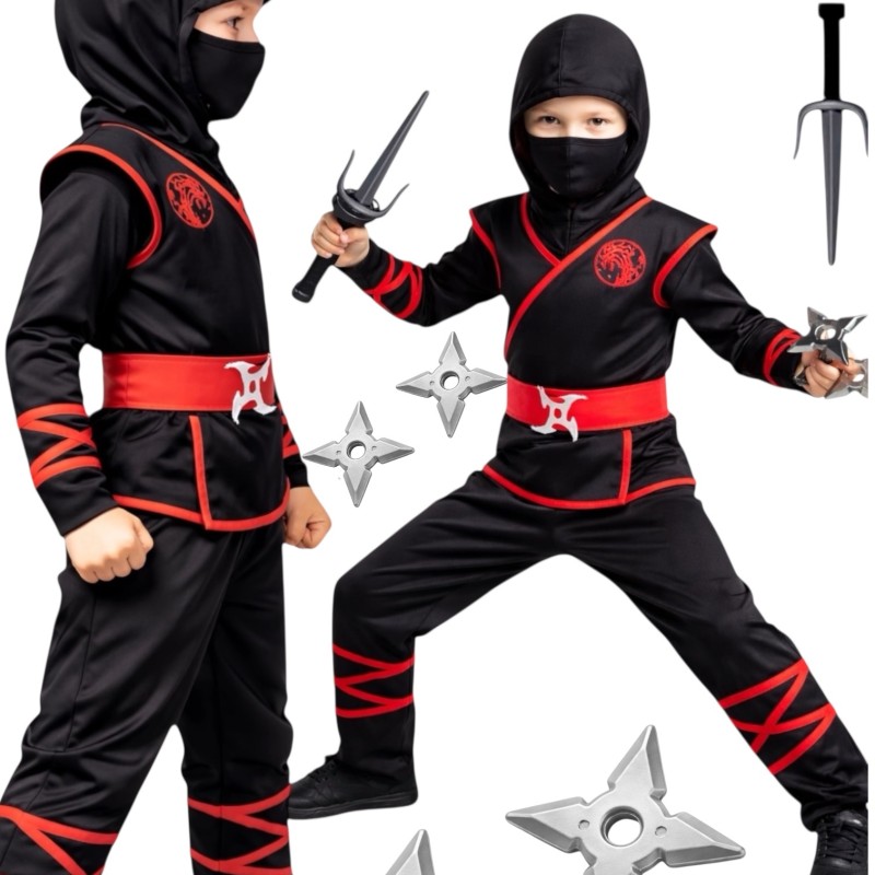 Przenieś swoje dziecko w świat niesamowitych przygód z naszym kostiumem ninja. Ten czarno-czerwony strój idealnie nadaje się na różne przyjęcia, imprezy tematyczne, a także do codziennych zabaw w domu.