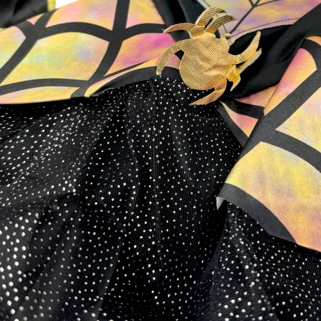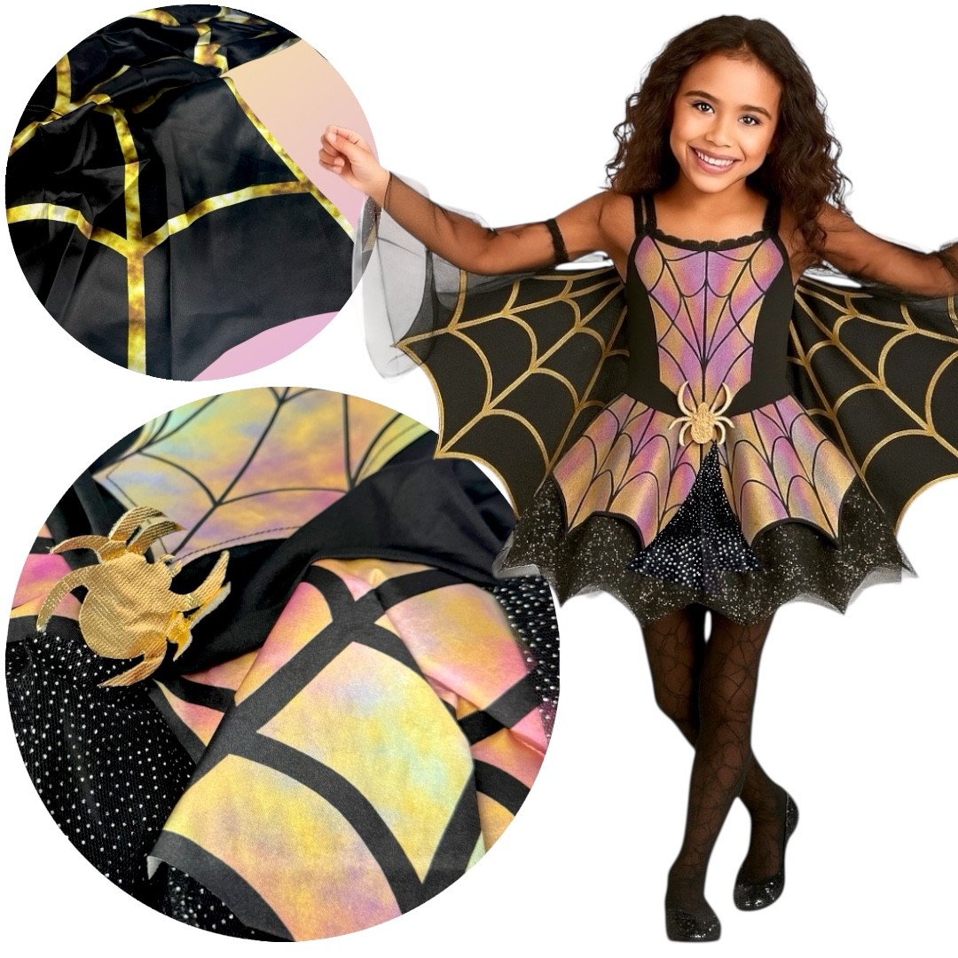Strój doskonale dopasowuje się do sylwetki, umożliwiając swobodę ruchów. Idealny dla małych księżniczek, które marzą o byciu pajęczą królową. Dodaj do stylizacji dodatki, takie jak tiara czy magiczna różdżka, aby stworzyć kompletny look.