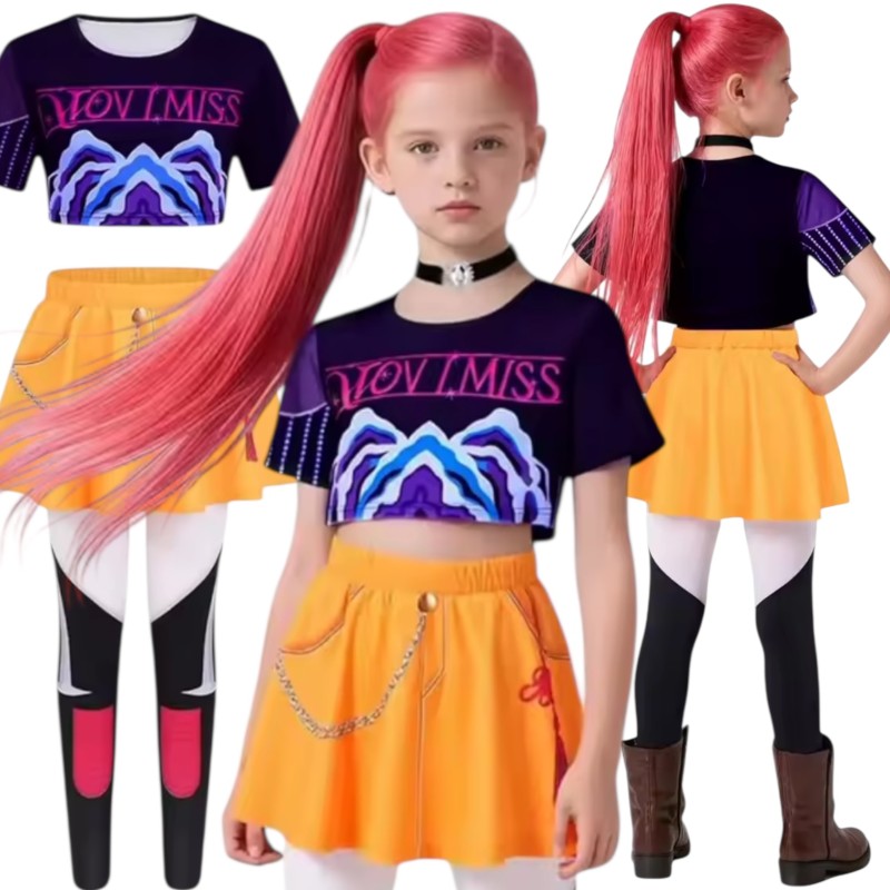 Komplet inspirowany postacią Mira z motywu Demon Hunters K-POP to nowoczesny strój w stylu anime i cosplay, który zachwyci każdą fankę dynamicznych, kolorowych stylizacji.