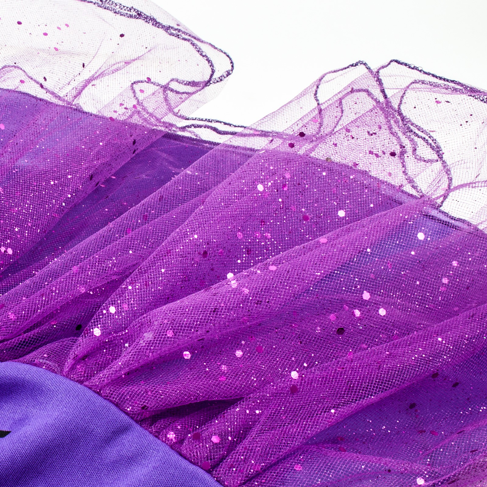 Sukienka wykonana z materiału nawiązującego do satyny. Materiał odbija ciekawie światło. Dół sukienki to dwie warstwy, mocno marszczonego tiulu - dzięki czemu dziewczęco odstaje. Wszystko na satynowej podszewce dzięki czemu strój nie prześwituje.
