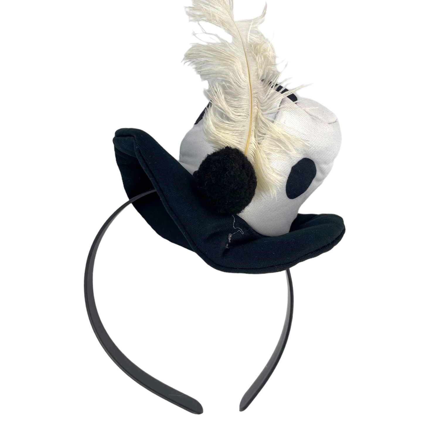 Kostium uzupełnia stylowa opaska z małym kapelusikiem ozdobionym pomponem i piórkiem.