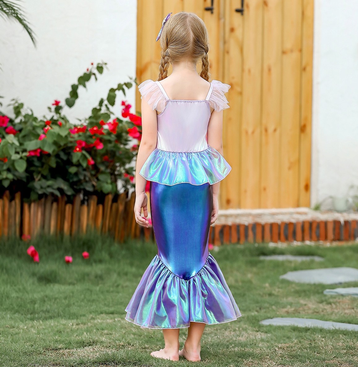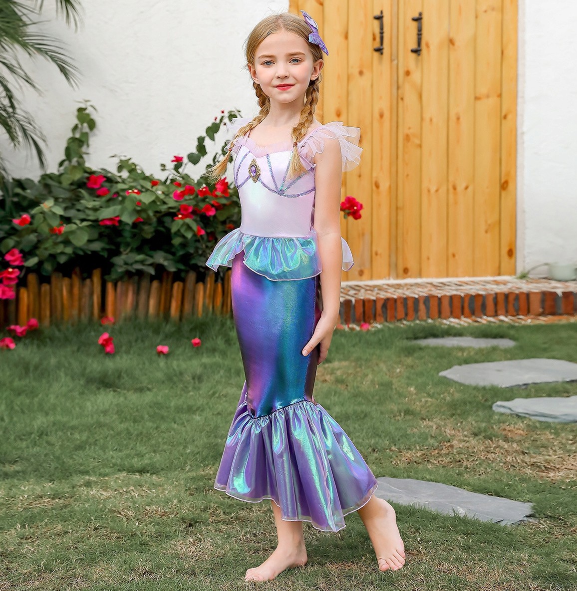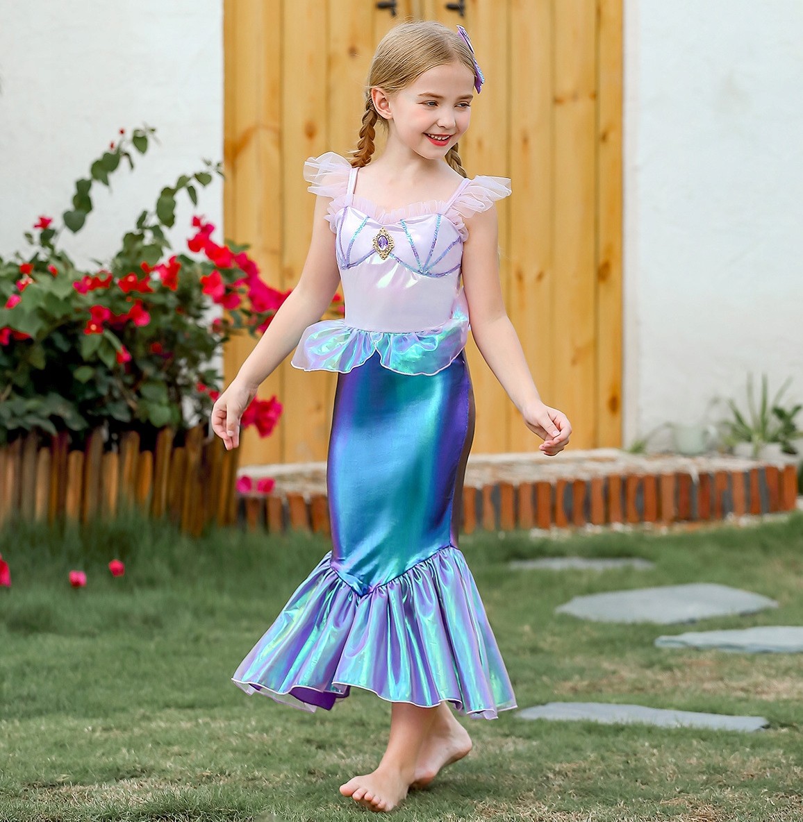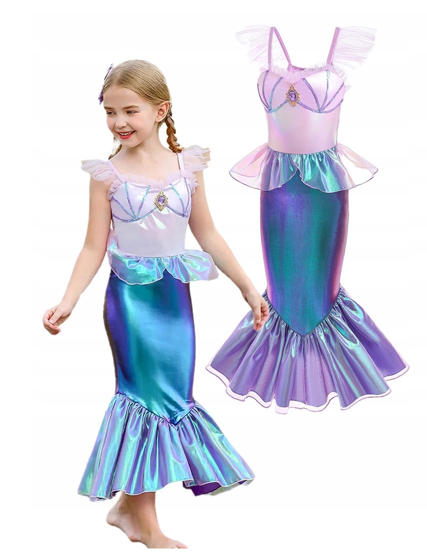 Kostium Ariel to piękna sukienka na ramiączkach, utrzymana w ukochanej przez Ariel turkusowej i fioletowej kolorystyce.