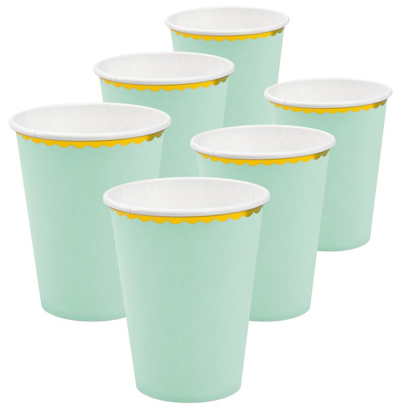 Odkryj elegancję i styl z naszymi kubeczkami papierowymi w pastelowym miętowym kolorze. Zestaw składa się z 6 kubeczków, które doskonale sprawdzą się na każdą okazję, od urodzin po garden party. Subtelny złoty brzeg dodaje im wyjątkowego uroku.