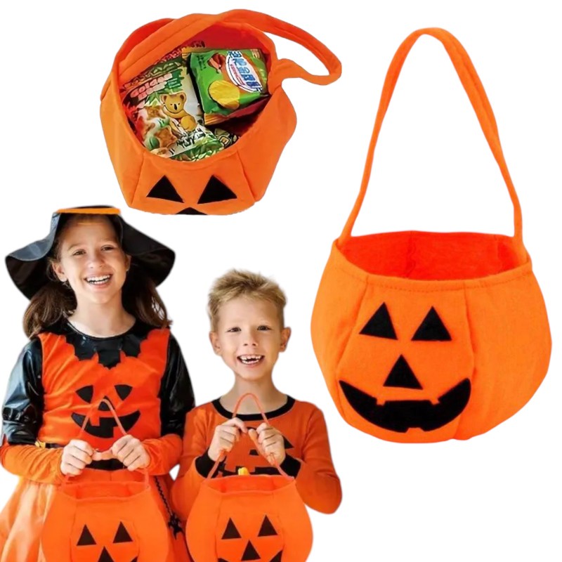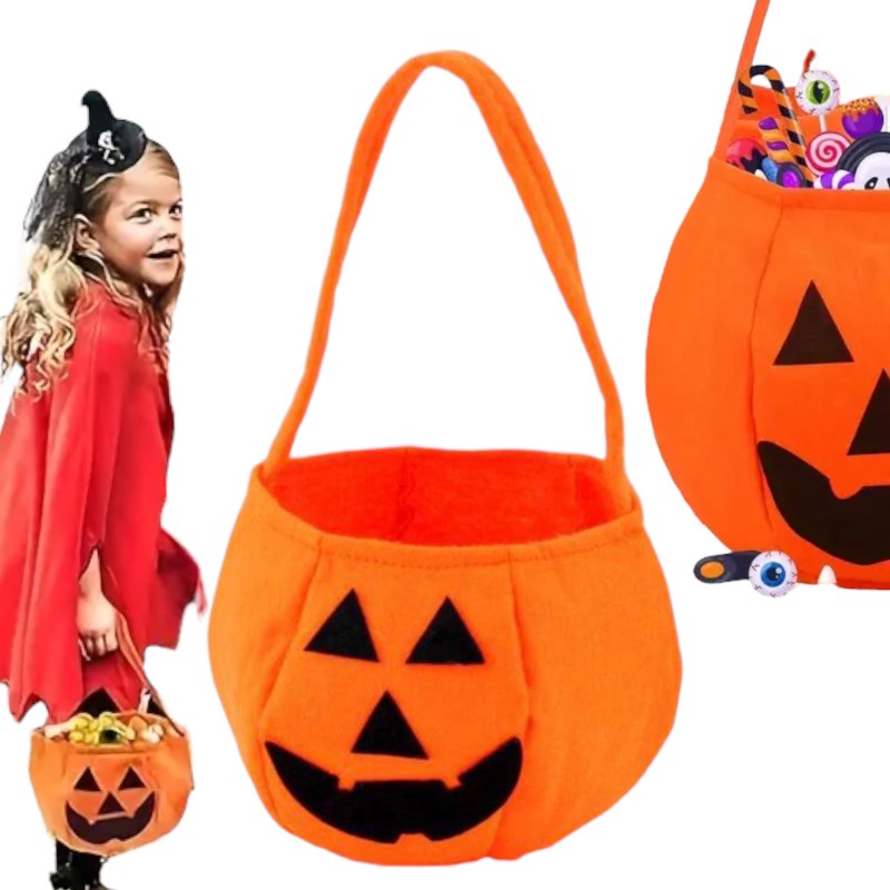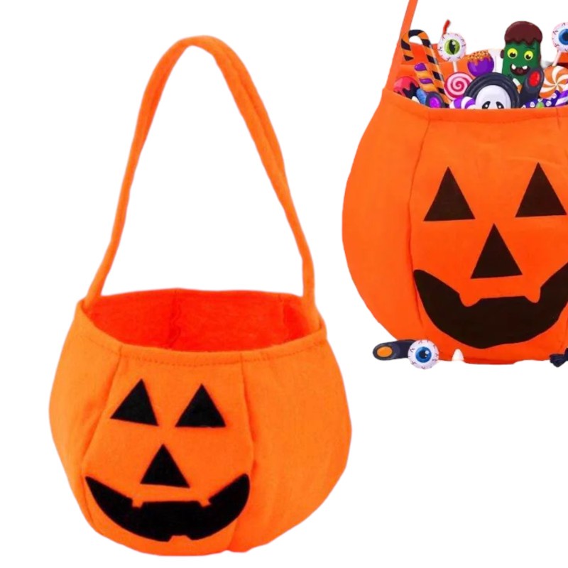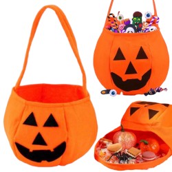 Koszyk do stroju i wystroju na Halloween lub święto Dyni. Idealnie sprawdzi się jako ozdoba domu. Miły w dotyku z wesołą buźką.