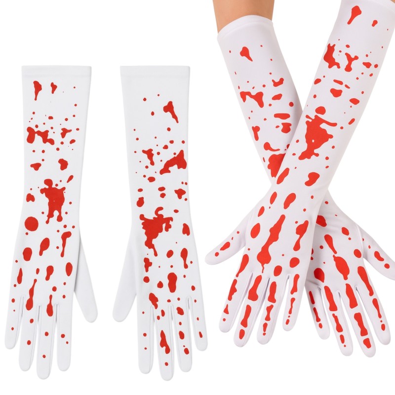 Dodaj odrobinę grozy do swojego kostiumu z tymi stylowymi rękawiczkami. Białe rękawiczki z czerwonymi plamami imitującymi krew to doskonały dodatek na Halloween czy inne imprezy tematyczne. Wykonane z miękkiego, elastycznego materiału, zapewniają komfort noszenia przez cały wieczór.