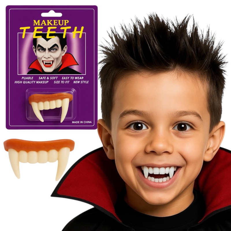 Odkryj wyjątkową nakładkę na zęby wampira, która zamieni każde dziecko w małego krwiopijcę. Doskonała na Halloween, przyjęcia tematyczne czy codzienną zabawę.