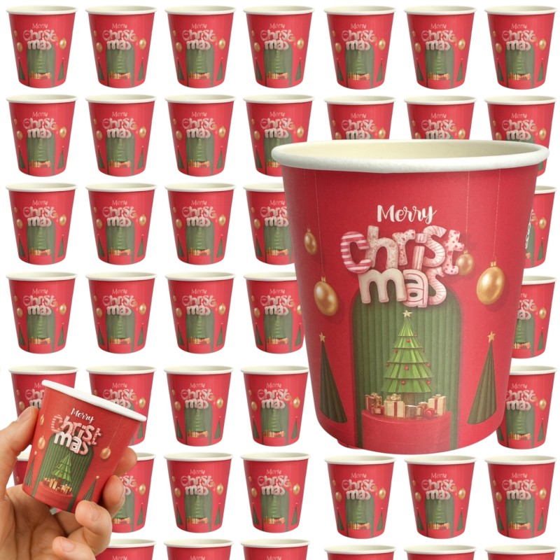 Małe kubeczki świąteczne Merry Christmas 75 ml – 50 szt.