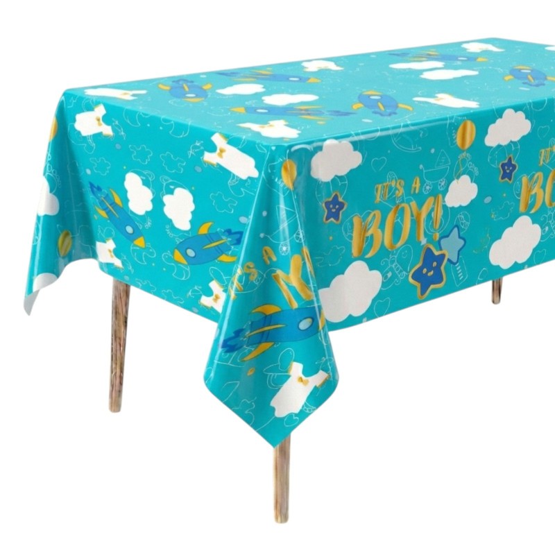 Obrus idealny na baby shower, przyjęcie z okazji narodzin chłopca, roczek lub sesję zdjęciową w domu. Wystarczy dodać balony, girlandę i papierowe naczynia, aby stworzyć spójną, tematyczną aranżację.