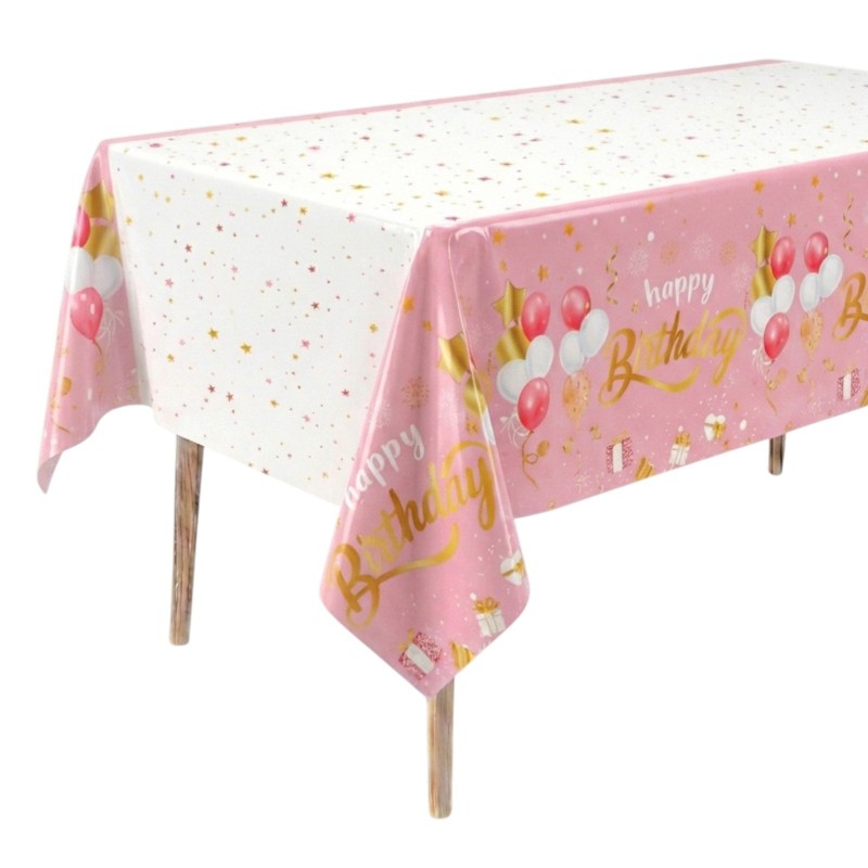 Obrus plastikowy różowy Happy Birthday 137x274 cm