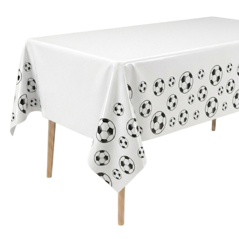 Biały obrus z motywem piłki nożnej, idealny na urodziny małego piłkarza, wieczór kibica czy sportowe przyjęcie. Jednorazowa dekoracja stołu, która szybko tworzy stadionowy klimat w domu.