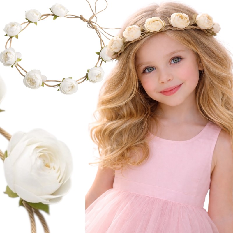 Wianek pięknie uzupełni dziewczęce sukienki tiulowe, pastelowe stylizacje i lekkie letnie sukienki. Sprawdzi się jako dodatek do stroju komunijnego, na urodziny, wesele, przyjęcie w ogrodzie, chrzest, sesję zdjęciową czy przedstawienie w przedszkolu.
