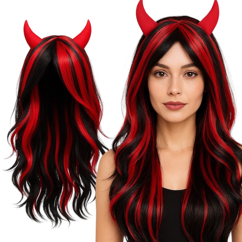 Przygotuj się na niezapomnianą przemianę z naszą peruką Diabeł. Ten unikalny dodatek łączy w sobie elegancję i odrobinę szaleństwa, dzięki czarno-czerwonym włosom i efektownym rogom. Idealna na Halloween, imprezy tematyczne czy karnawał.