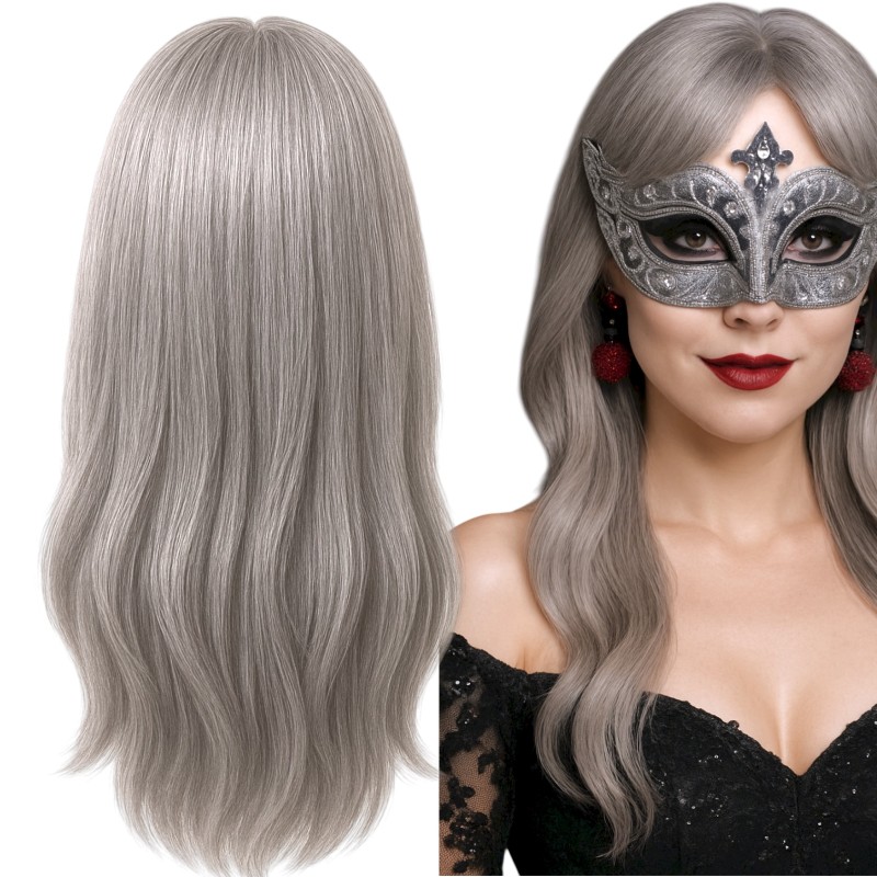 Odkryj elegancję i styl z naszą peruką w kolorze szaro-srebrnym. Długie, gładkie włosy to doskonały wybór na różne okazje, od imprez tematycznych po sesje zdjęciowe.