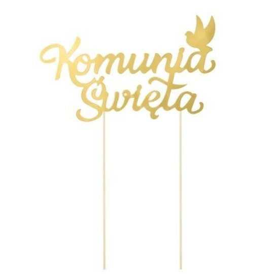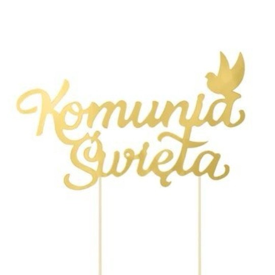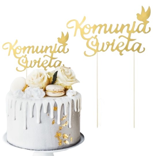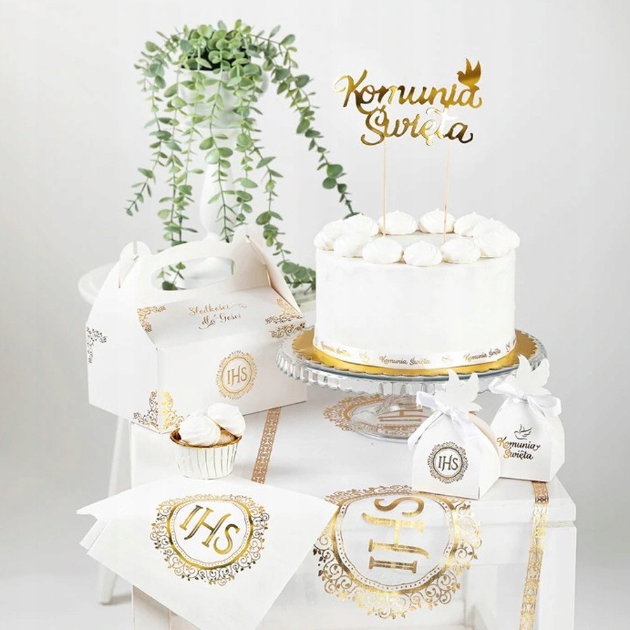 Topper na tort IHS wykonany z papieru w kolorze złotym lustrzanym.