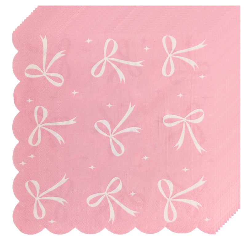 Odkryj urok naszych różowych serwetek ozdobionych subtelnym wzorem kokardek. Idealne na każde przyjęcie, dodadzą elegancji i stylu Twojemu stołowi.