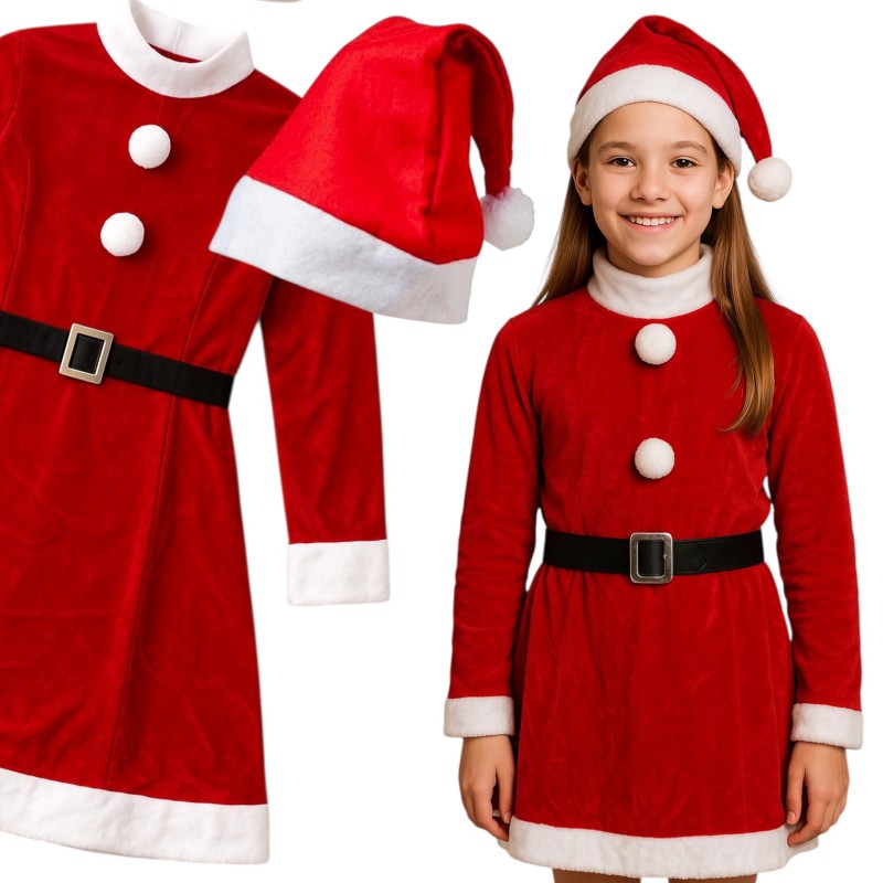 Świąteczny Strój Mikołajki z Czapka 10-13 lat