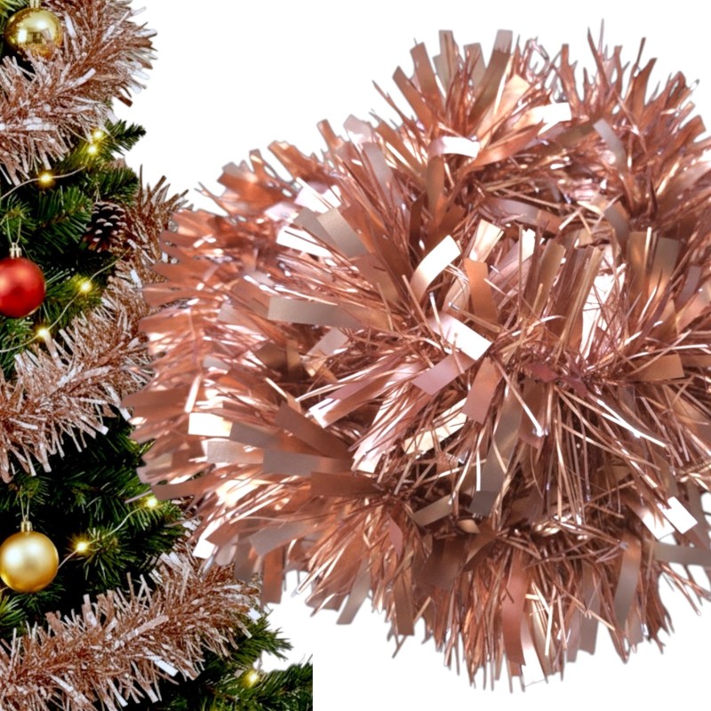 Łańcuch choinkowy 195cm różowe złoto z srebrnym wykończeniem