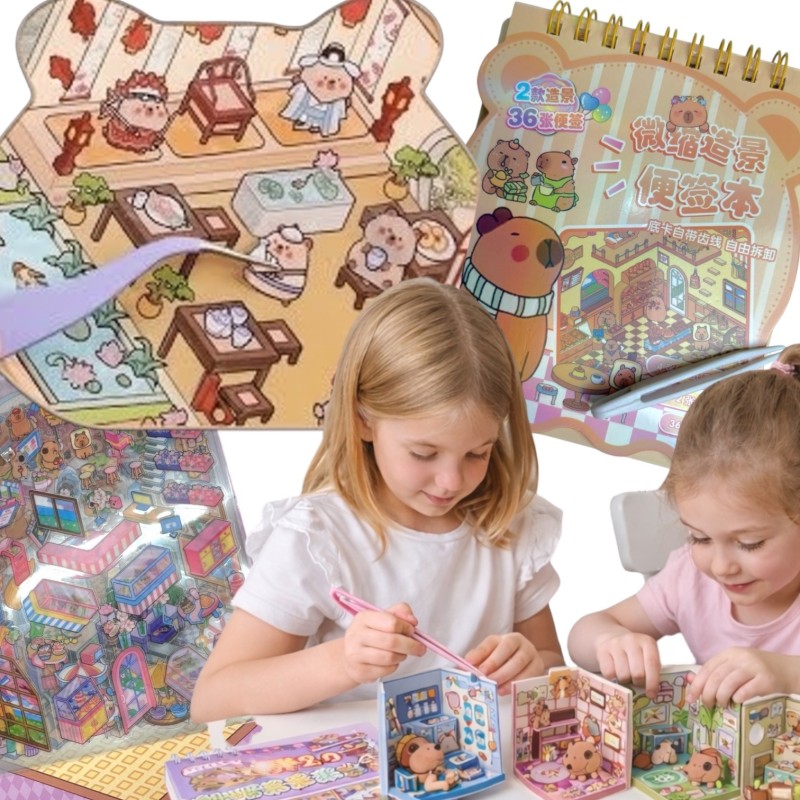 Układanka Wyklejanka Domki Scenki Kreatywne 3D antystresowa naklejki pęseta Kapibara
