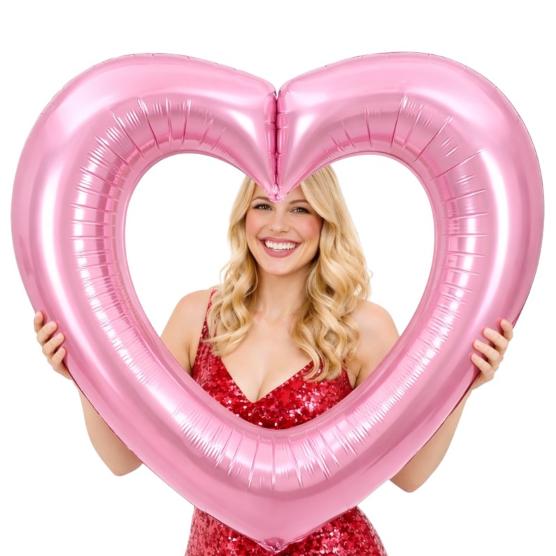 Elegancki balon foliowy w kształcie serca, w kolorze różowym, idealny na Walentynki. Doskonały jako dekoracja na przyjęcia i sesje zdjęciowe. Wymiary 106x102 cm.