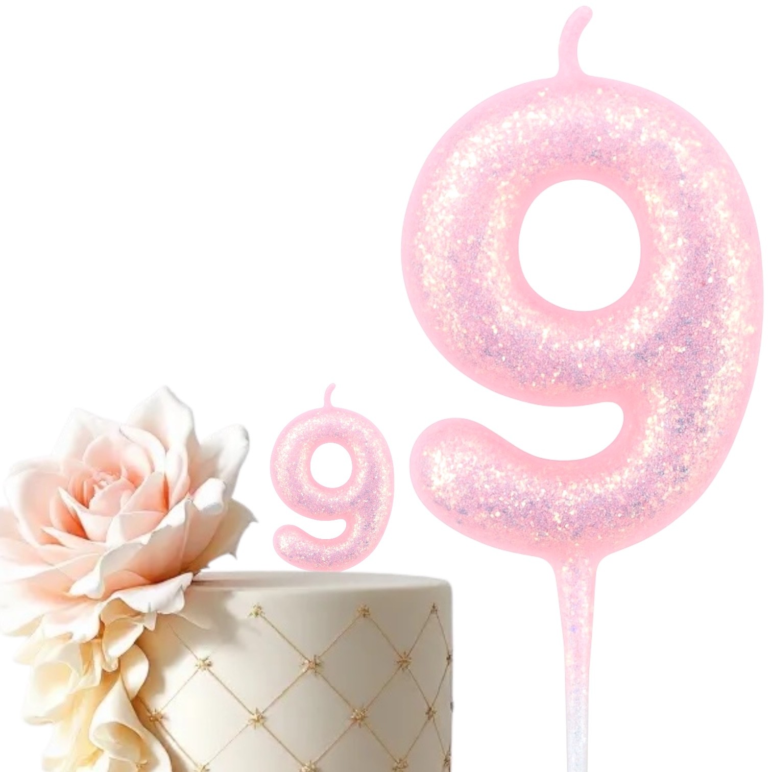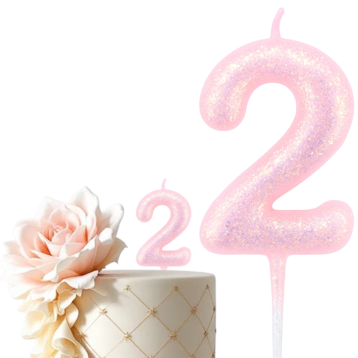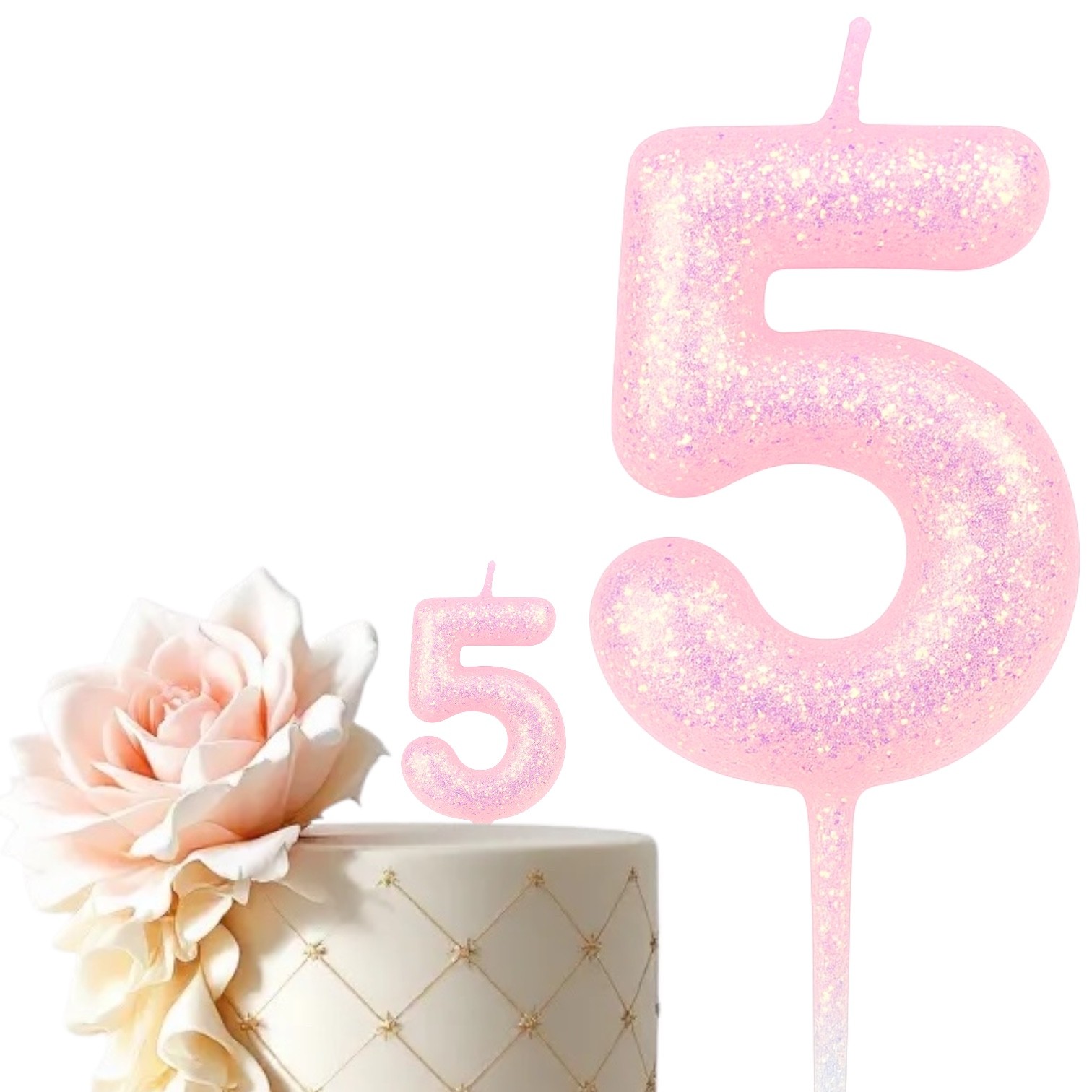 Odkryj piękno i elegancję naszej świeczki urodzinowej w kolorze różowym, ozdobionej delikatnym brokatem. Świeczka ma 11 cm wysokości wraz ze szpikulcem, co sprawia, że idealnie wystaje z tortu na 7 cm, dodając mu wyjątkowego uroku.