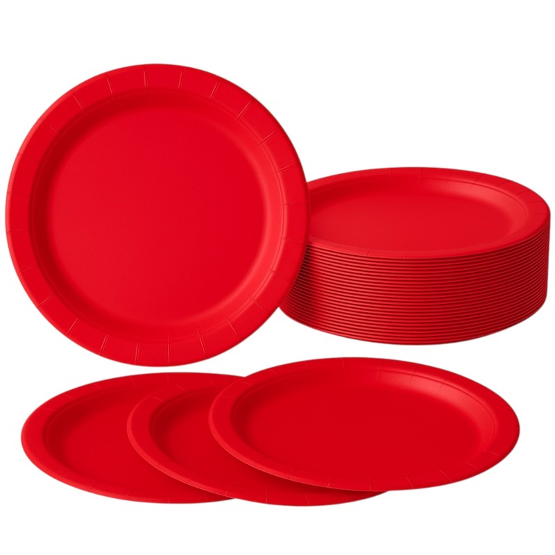 Zestaw 20 czerwonych talerzyków papierowych o średnicy 18 cm. Idealne na każdą imprezę, dodając odrobinę koloru i stylu do Twojego stołu. Wykonane z trwałego materiału, łatwe w użyciu i utylizacji.