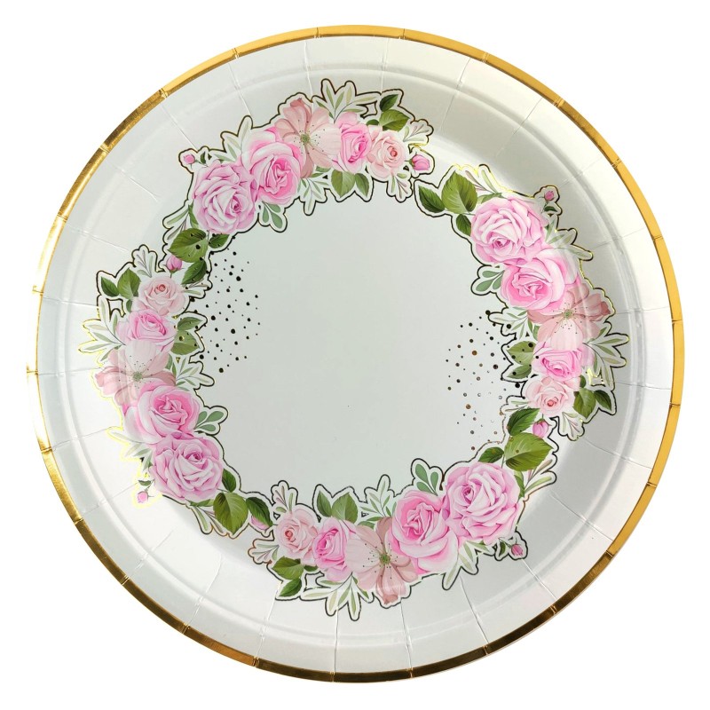 Wprowadź odrobinę elegancji na swoje przyjęcie dzięki naszym talerzykom papierowym z motywem róż. Każdy talerzyk ma średnicę 23 cm i jest ozdobiony delikatnym wzorem różowym, który doda uroku każdej uroczystości. Talerzyki są wykonane z wysokiej jakości papieru, co zapewnia ich wytrzymałość i funkcjonalność podczas serwowania przekąsek czy deserów.