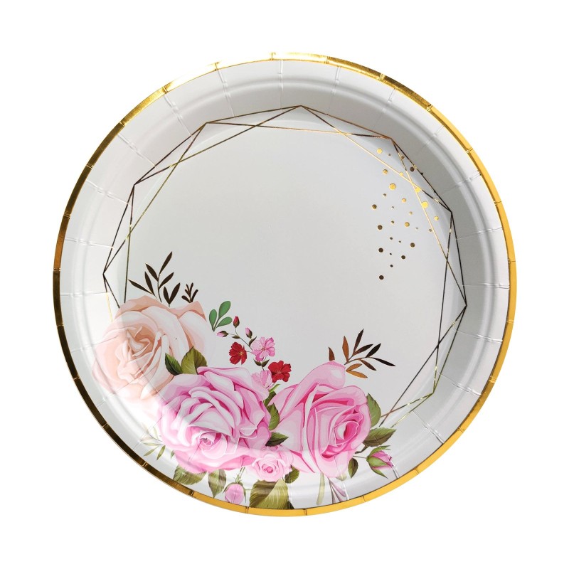 Talerzyki Papierowe Różyczki 18 cm 8 sztuk