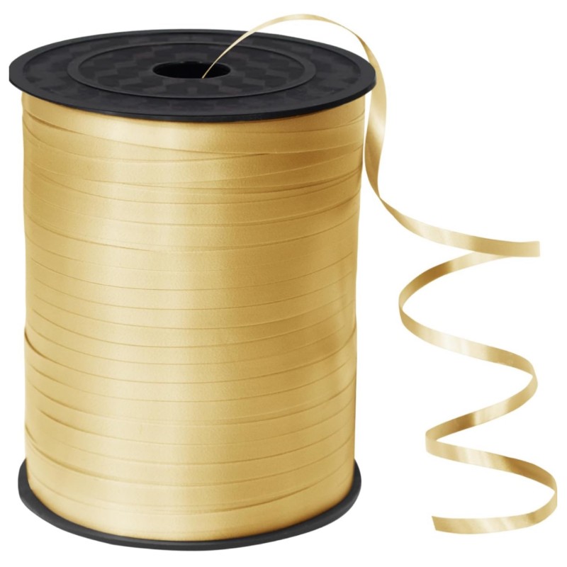 Elegancka złota wstążka o długości 225m i szerokości 5mm. Idealna do dekoracji balonów, pakowania prezentów oraz ozdabiania kartek okolicznościowych.