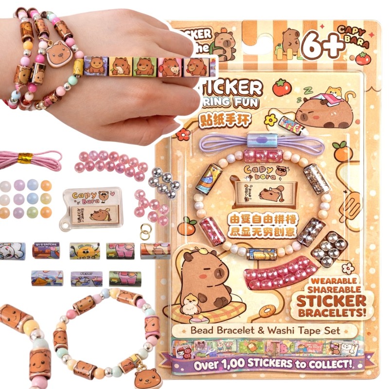 Zestaw kreatywny Kapibara Sticker Fun to kolorowa zabawa w tworzenie własnej biżuterii. W pudełku znajdziesz elementy potrzebne do wykonania dwóch bransoletek przyjaźni w uroczym stylu kawaii.